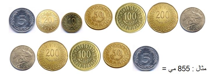 أعبّر عن المبلغ بأقلّ عدد من القطع النّقديّة :