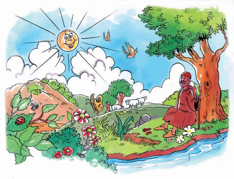 وَالأسْمَرُ الفلّاحُ تَحْتَ الظِلّ يَفْتَرِشُ الحَشِيشُ يُقبِّلُ الأوْرَاقَا