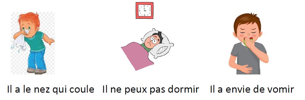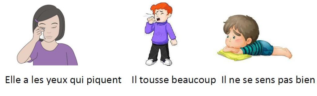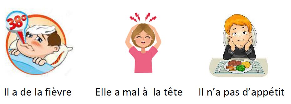 – J’ai mal à la gorge et à la tête et je tousse aussi .