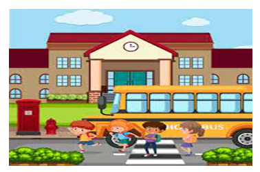 الحافلة تغطّي المدرسة تغطية جزئيّة بالنّسبة إلى الأطفال .