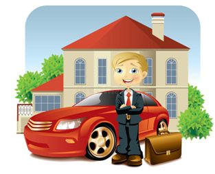 السيّارة …………….. المنزل …………… بالنّسبة إلى الرّجل .