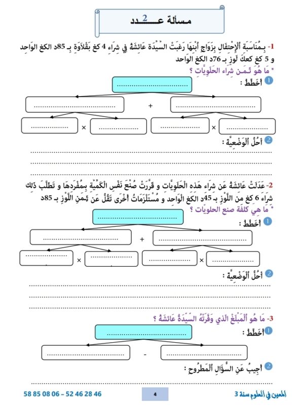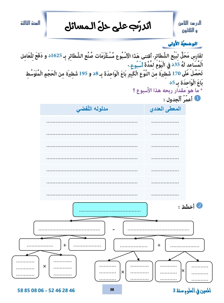 المعين في العلوم سنة 3 كتاب يشمل مادتي الرياضيات و الإيقاظ العلمي بطرح جديد خاصة في الرياضيات بحل المسائل بالمخطط و مرفق بالإصلاح الدقيق و المفصل