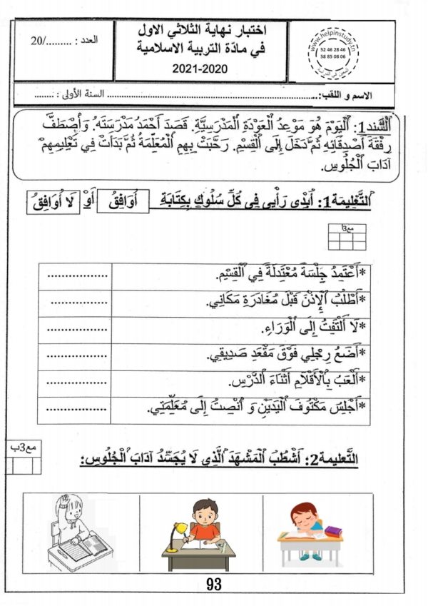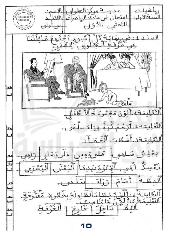 امتحانات المعين في الدراسة السنة الأولى الثلاثي الأول امتحانات مجمعة من مدارس صفاقس و مرفقة بالاصلاح المفصل و الدقيق– الطباعة بالاسود و الابيض –التجميع في شكل كتاب