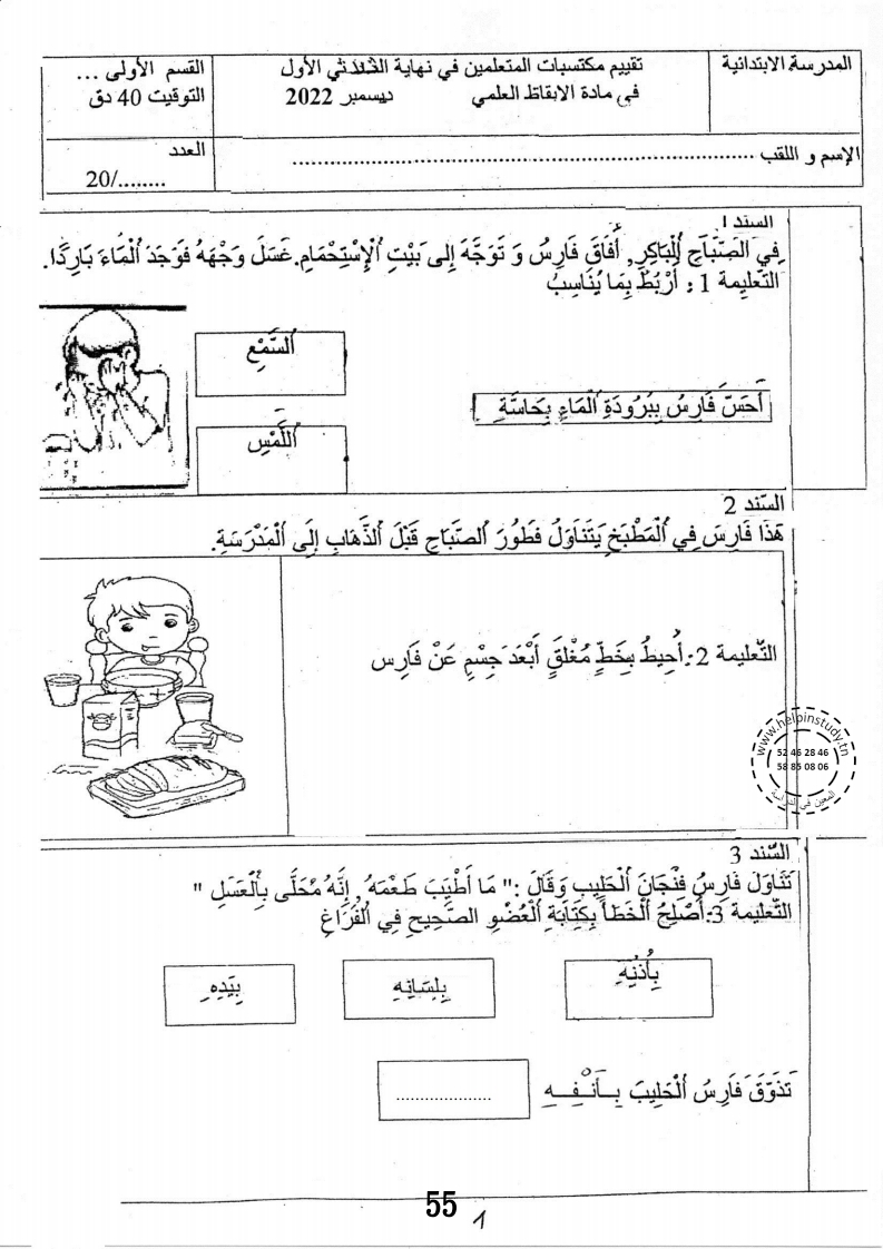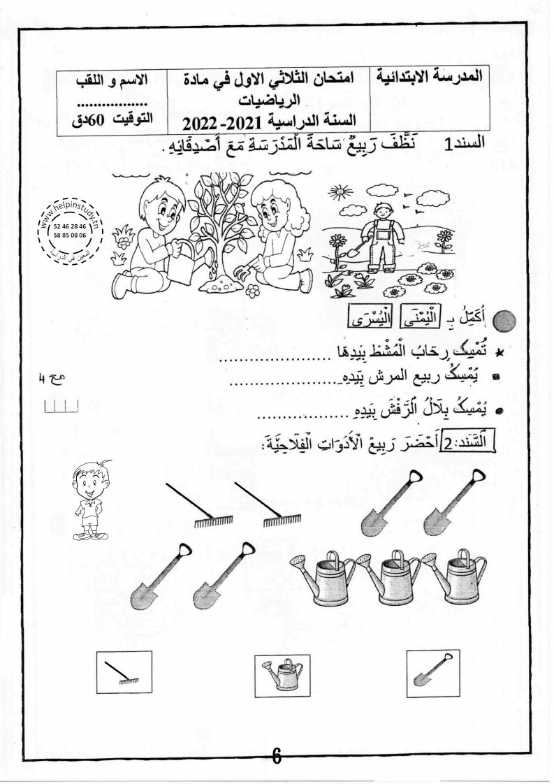 امتحانات المعين في الدراسة السنة الأولى الثلاثي الأول امتحانات مجمعة من مدارس صفاقس و مرفقة بالاصلاح –التجميع في شكل كتاب