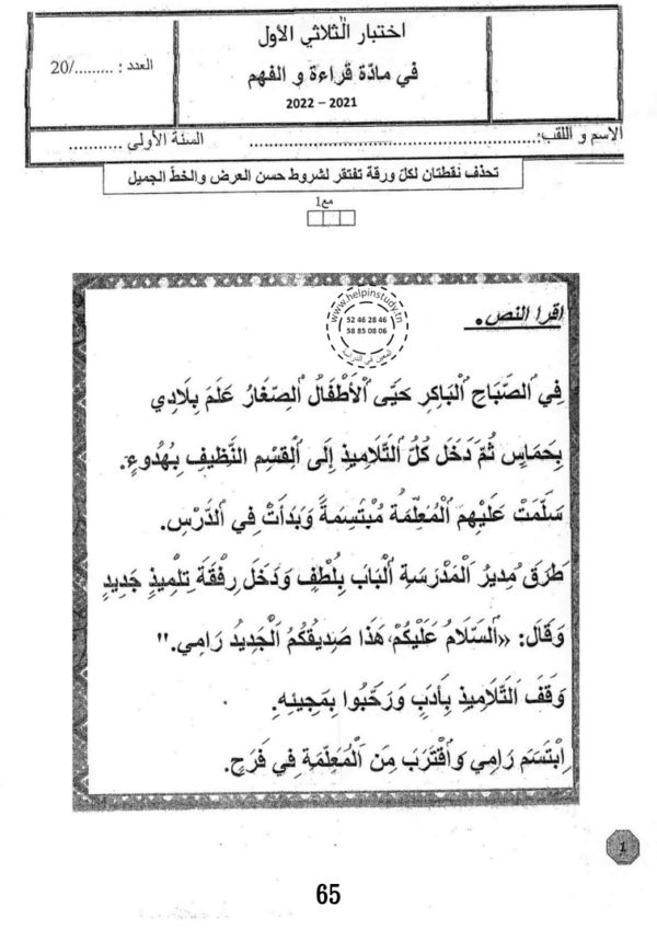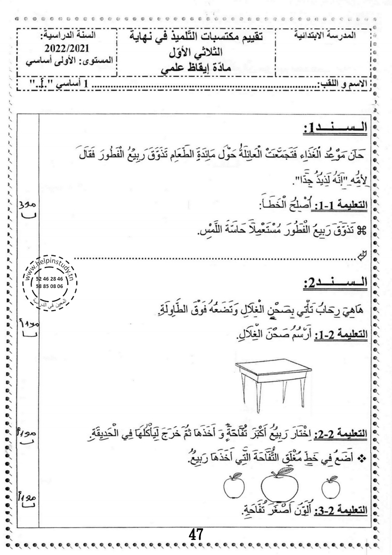التصنيفات: الأقسام, السنة 1 أساسي, المعين سنة 1, امتحانات, كتب المعين