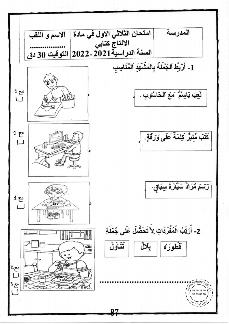 امتحانات السنة 1 لنهاية الثلاثي الأول