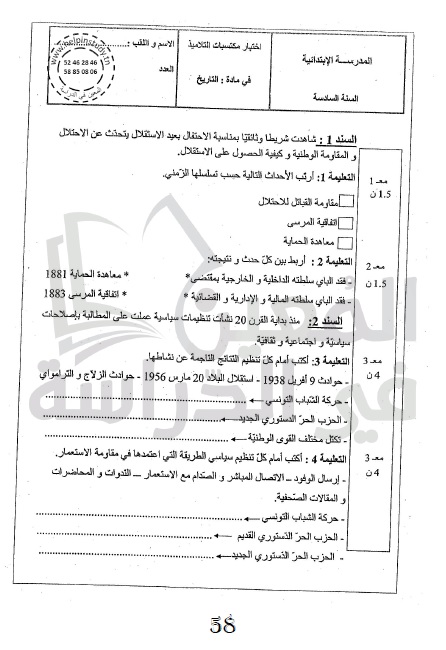 امتحانات المعين في الدراسة في جميع المواد لتلاميذ السنة السادسة من التعليم الأساسي للسنة الدراسية 2023-2024 مرفقة بالإصلاح