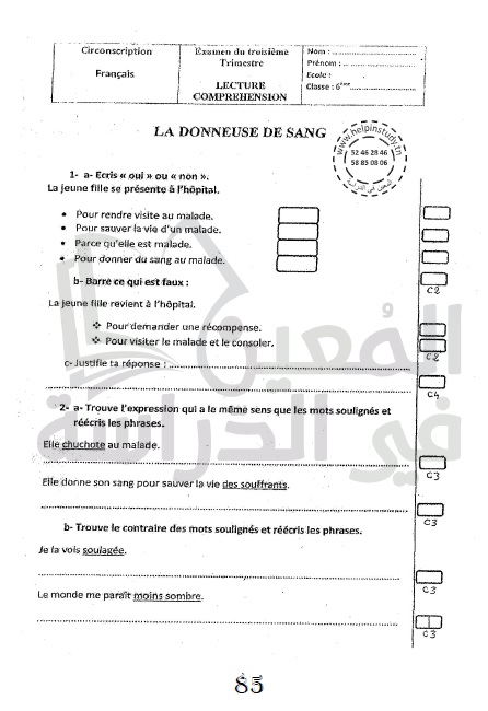 امتحانات المعين الثلاثي الثالث سنة سادسة