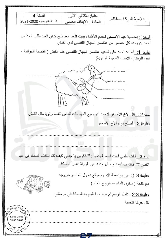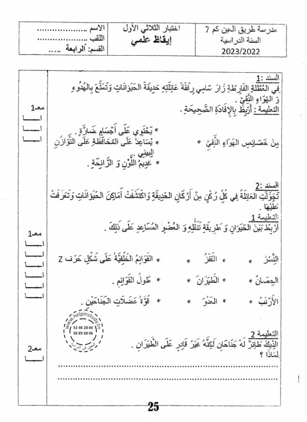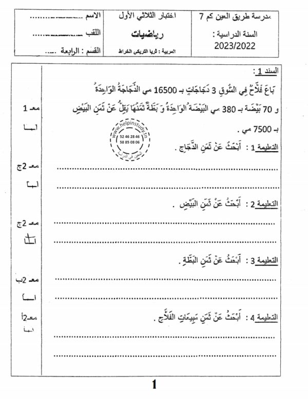 الوسم: امتحانات المعين في الدراسة السنة الرابعة الثلاثي الأول