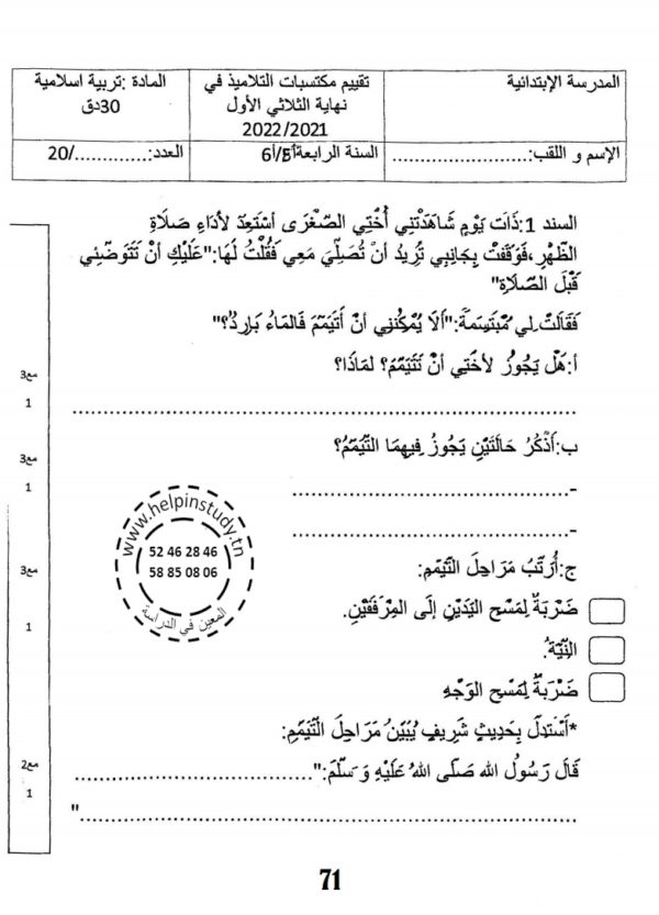 أتمرن على الإمتحانات سنة 4 – ثلاثي 3