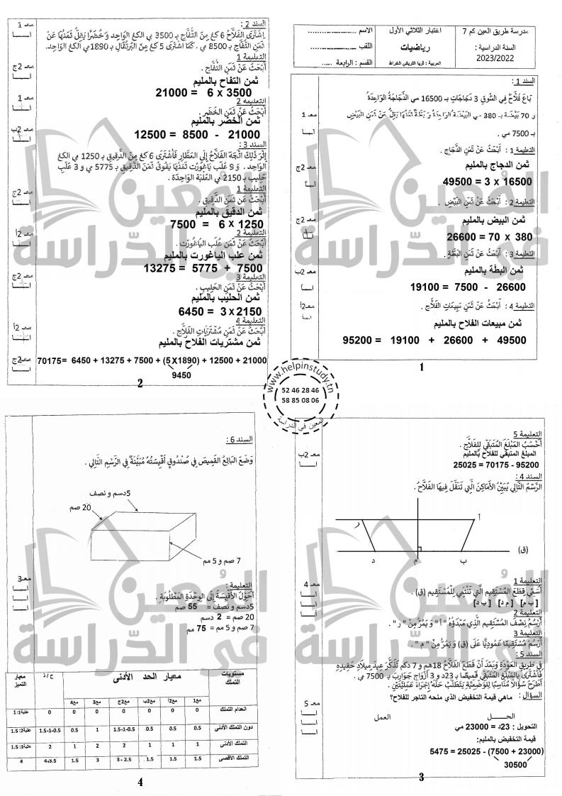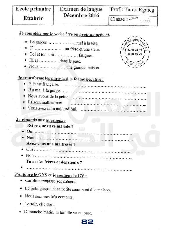 امتحانات المعين في الدراسة السنة الرابعة الثلاثي الأول امتحانات مجمعة من مدارس صفاقس و مرفقة بالاصلاح التجميع في شكل كتاب