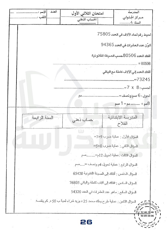 امتحانات المعين في الدراسة السنة الرابعة الثلاثي الأول امتحانات مجمعة من مدارس صفاقس و مرفقة بالاصلاح المفصل و الدقيق– الطباعة بالاسود و الابيض –التجميع في شكل كتاب