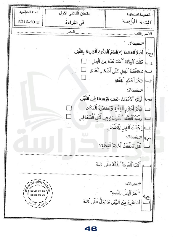 التصنيفات: الأقسام, السنة 4 أساسي, المعين سنة 4, امتحانات, كتب المعين