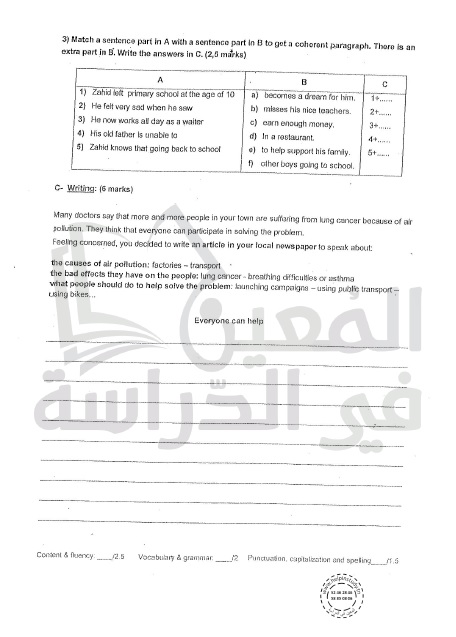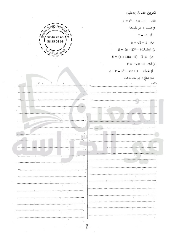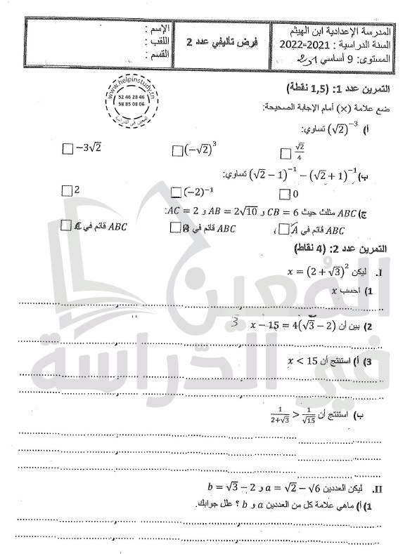 الوسم: فروض تأليفية سنة 9 الثلاثي الثاني