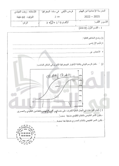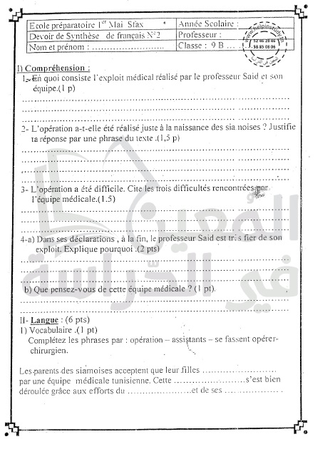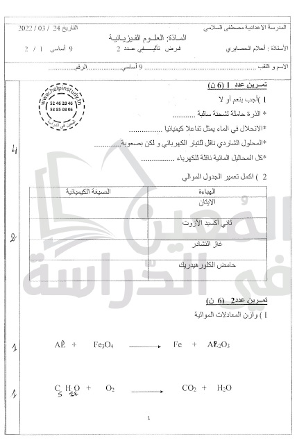 فروض تأليفية سنة 9 الثلاثي الثاني