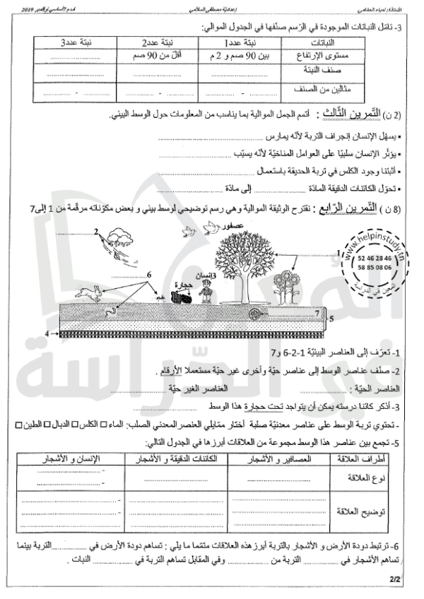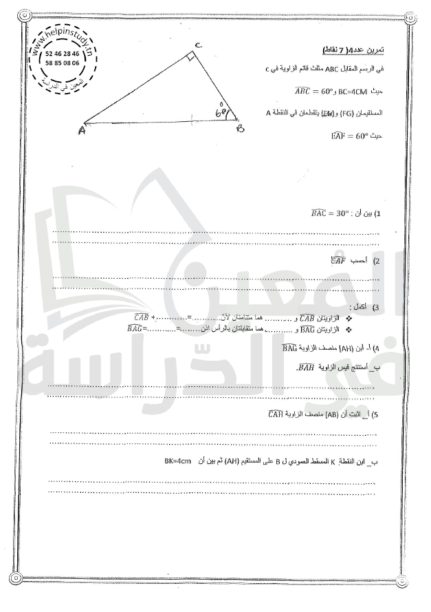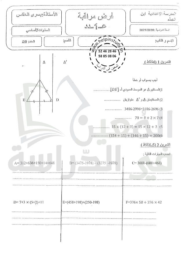 فروض مراقبة سنة 7 الثلاثي الأول