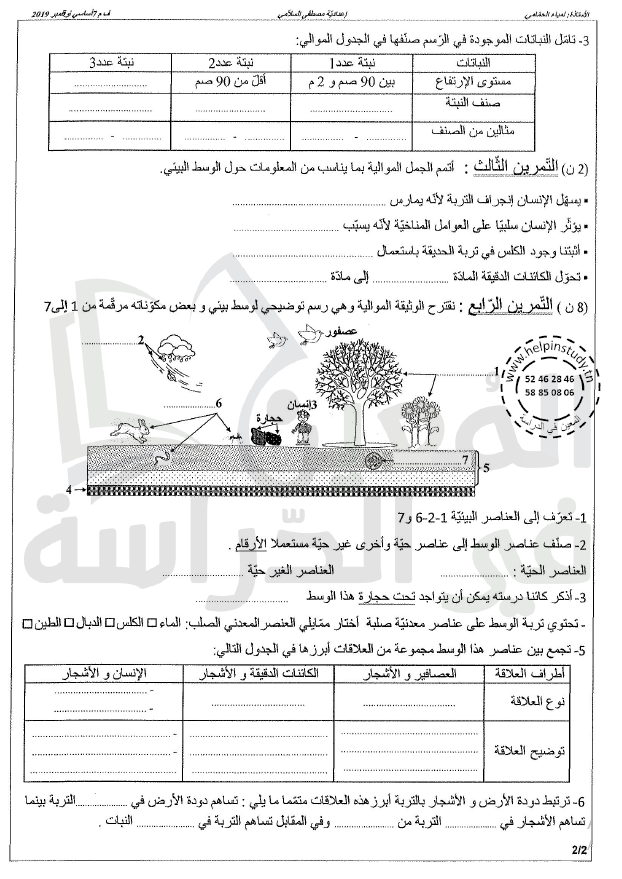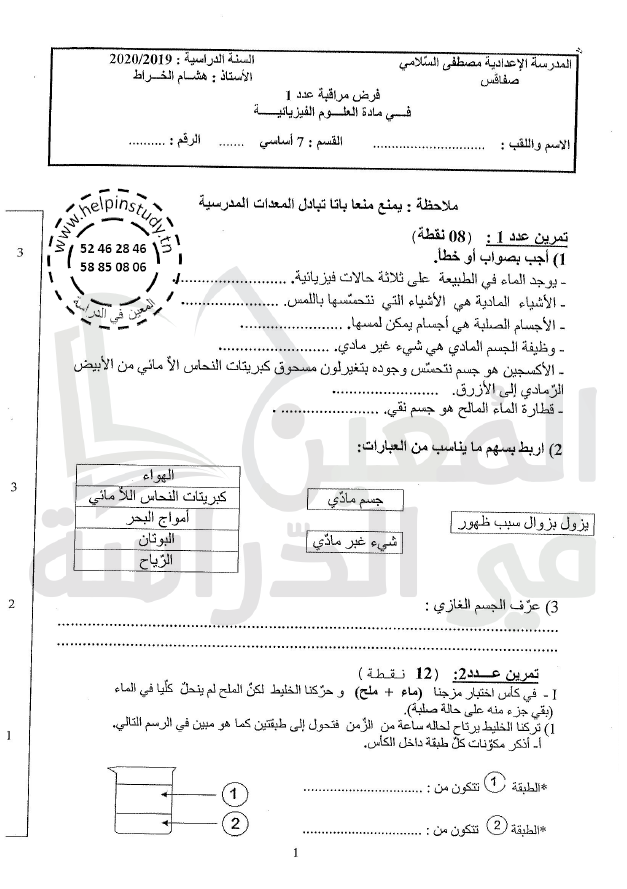 فروض مراقبة سنة 7 الثلاثي الأول: جميع الفروض مرفقة بالإصلاح المفصل ما عدى مادة التربية التكنولوجية