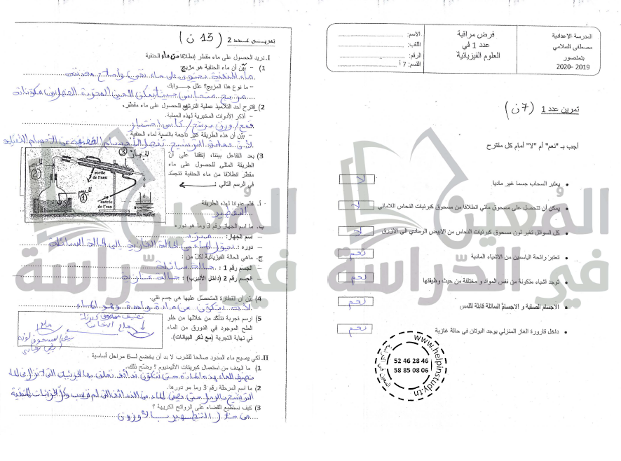 أتمرن على الإمتحانات سنة 1 ثلاثي 2