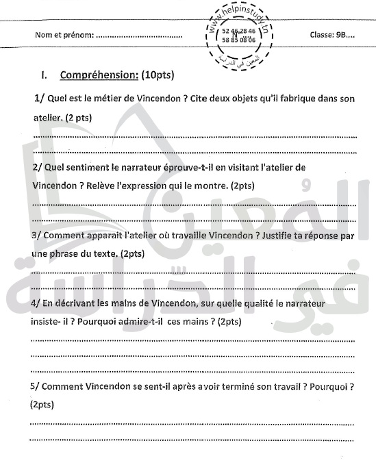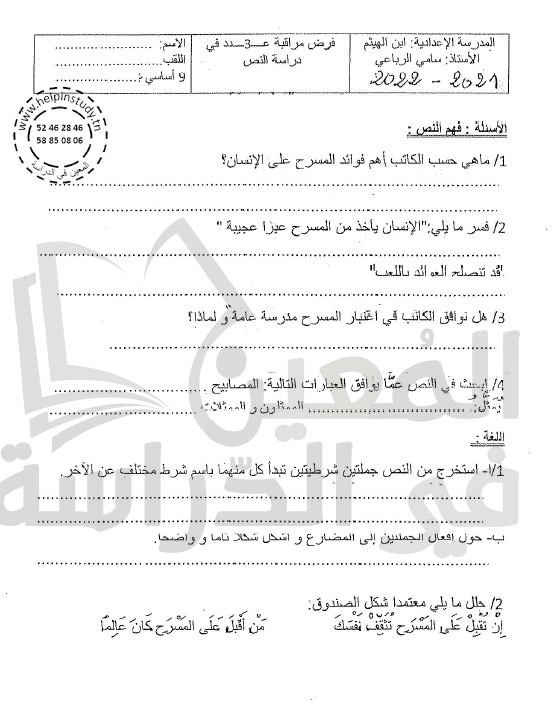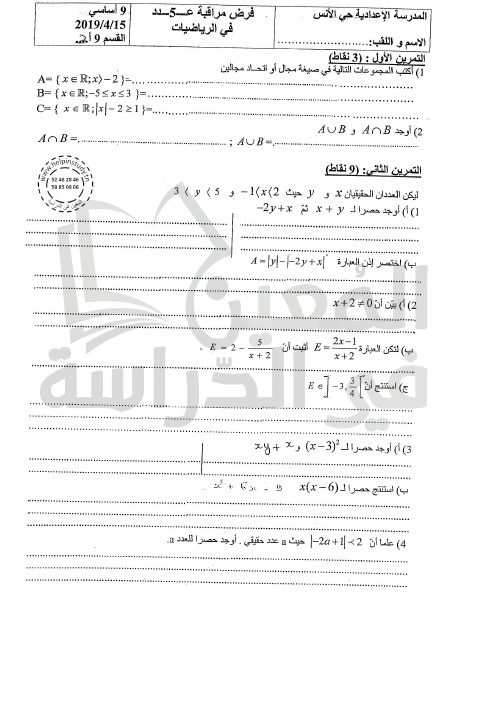 فروض مراقبة سنة 9 الثلاثي الثالث