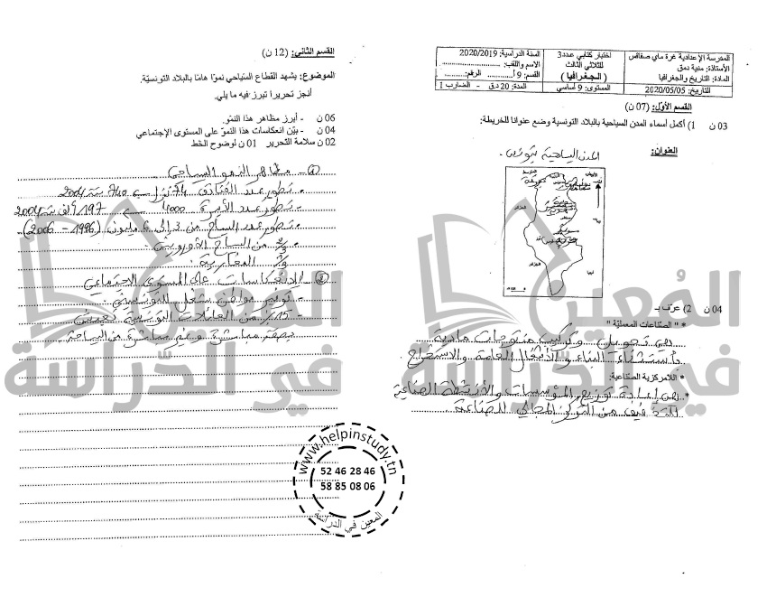 الوسم: فروض مراقبة سنة 9 الثلاثي الثالث