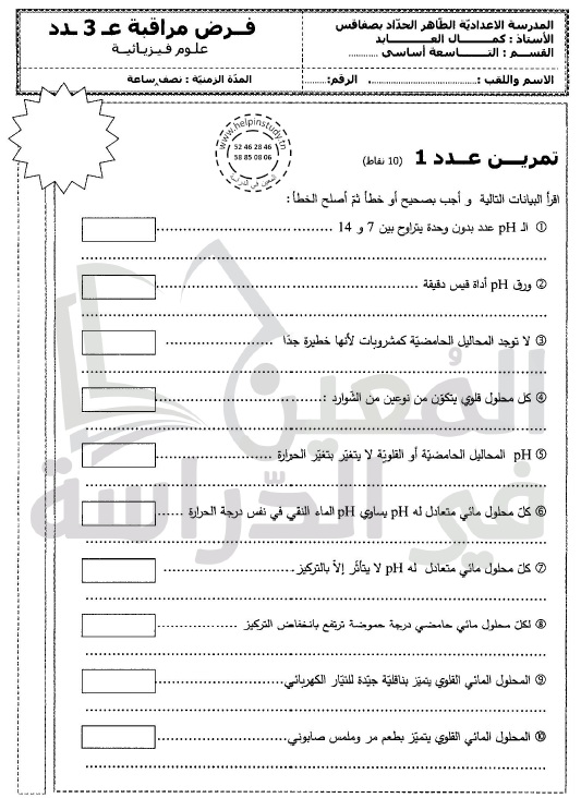 فروض مراقبة سنة 9 الثلاثي الثالث: جميع الفروض مرفقة بالإصلاح المفصل
