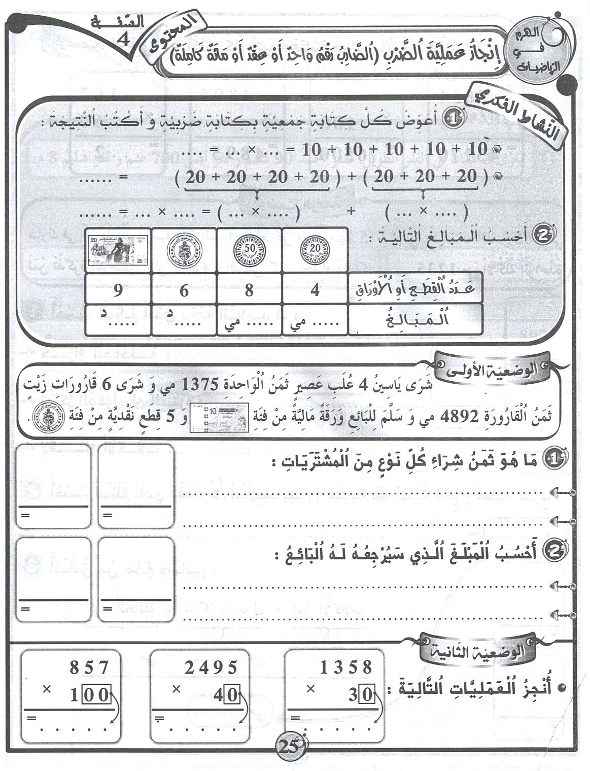 الهرم في الرياضيات – سنة 4 – كامل السنة- تقييمات – دعم و علاج – الحساب الذهني