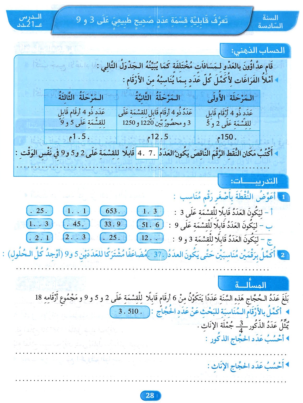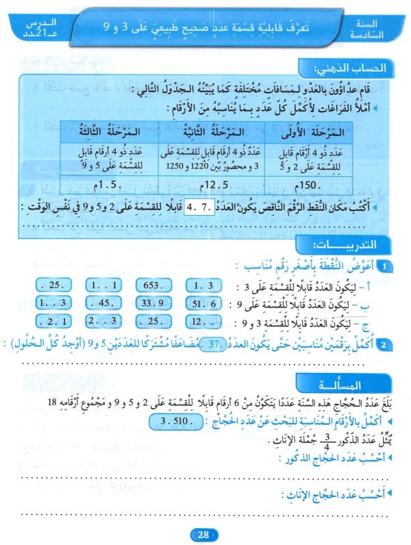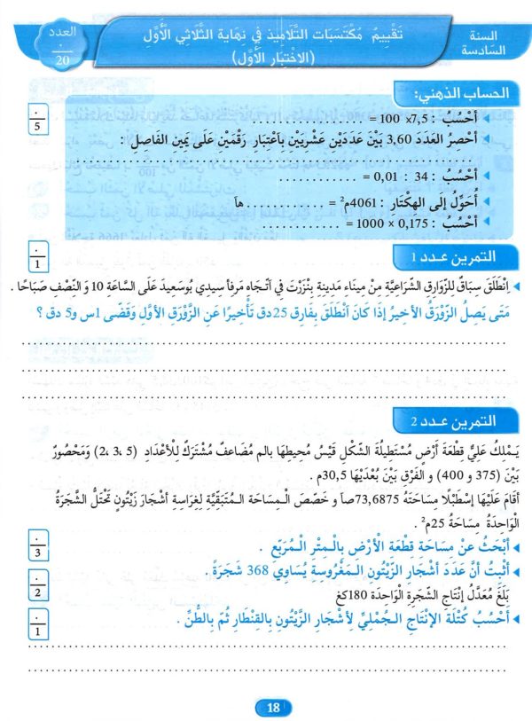 الوئام في الرياضيات – سنة 6 – كامل السنة- الحساب الذهني- الحساب – الهندسة – نظام القيس – التدريب على حل المسائل