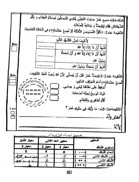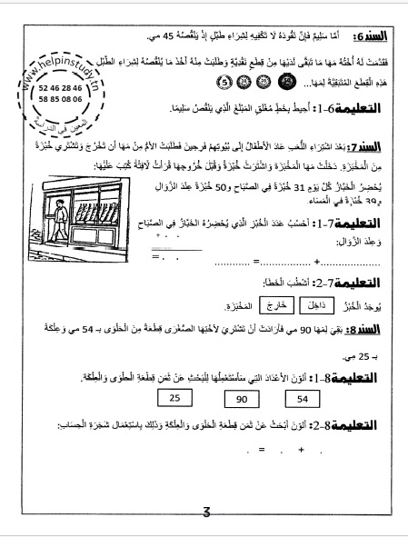 امتحانات المعين في الدراسة في جميع المواد لتلاميذ السنة الأولى من التعليم الأساسي للسنة الدراسية 2023-2024 مرفقة بالإصلاح