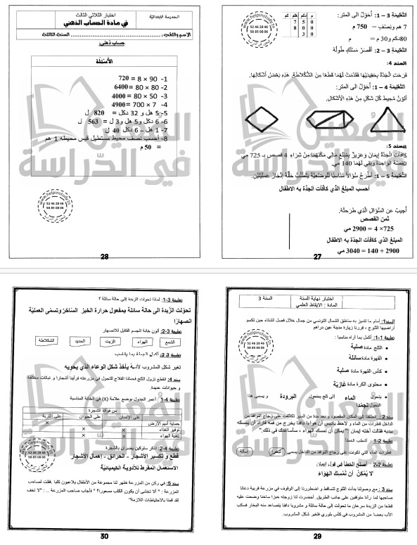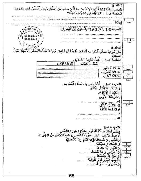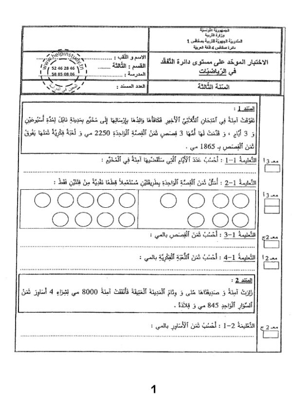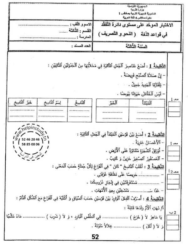 امتحانات المعين في الدراسة في جميع المواد لتلاميذ السنة الثالثة من التعليم الأساسي للسنة الدراسية 2023-2024 مرفقة بالإصلاح