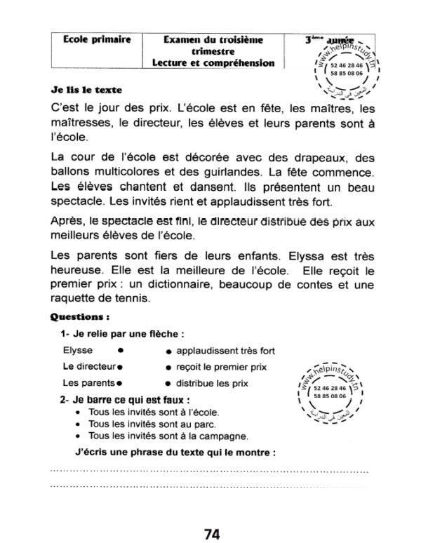 أتمرن على الإمتحانات سنة 2 – ثلاثي 3