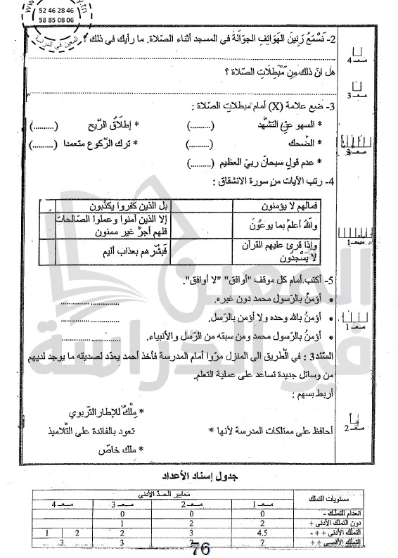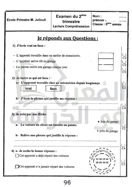 امتحانات المعين في الدراسة في جميع المواد لتلاميذ السنة الخامسة من التعليم الأساسي مرفقة بالإصلاح