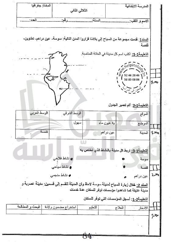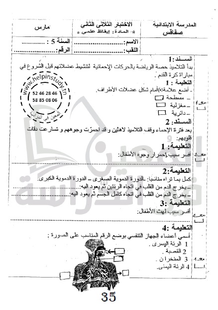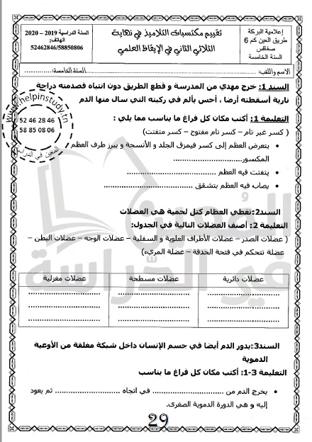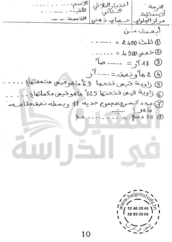 الوسم: امتحانات سنة 5 ثلاثي الثاني مرفقة بالإصلاح