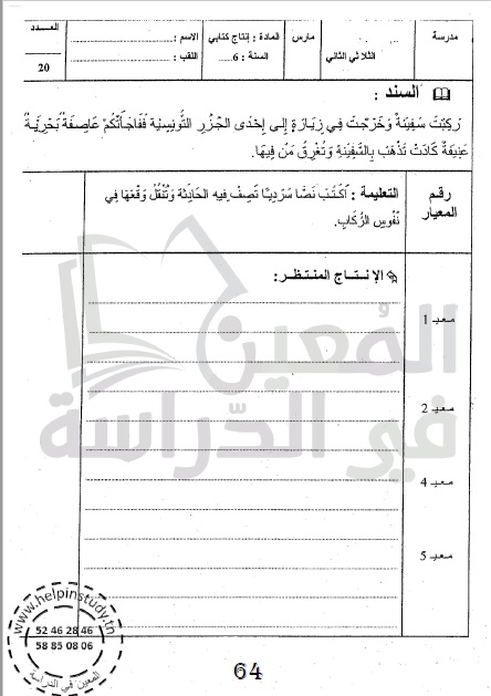 التصنيفات: الأقسام, السنة 6 أساسي, المعين سنة 6, امتحانات, كتب المعين