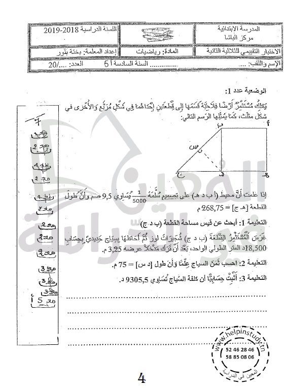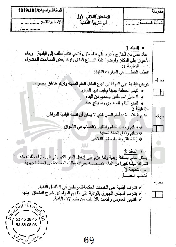 الوسم: امتحانات سنة 6 ثلاثي الثاني مرفقة بالإصلاح