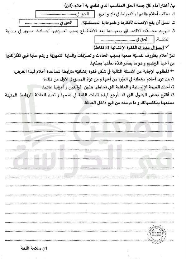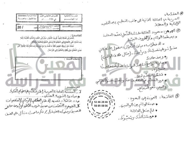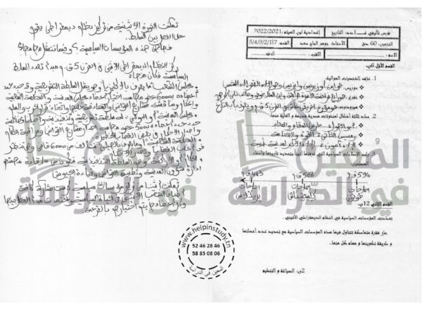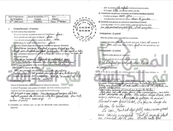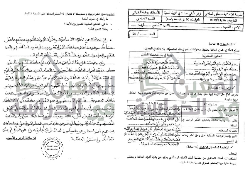 الوسم: فروض تأليفية سنة 7 الثلاثي الأول