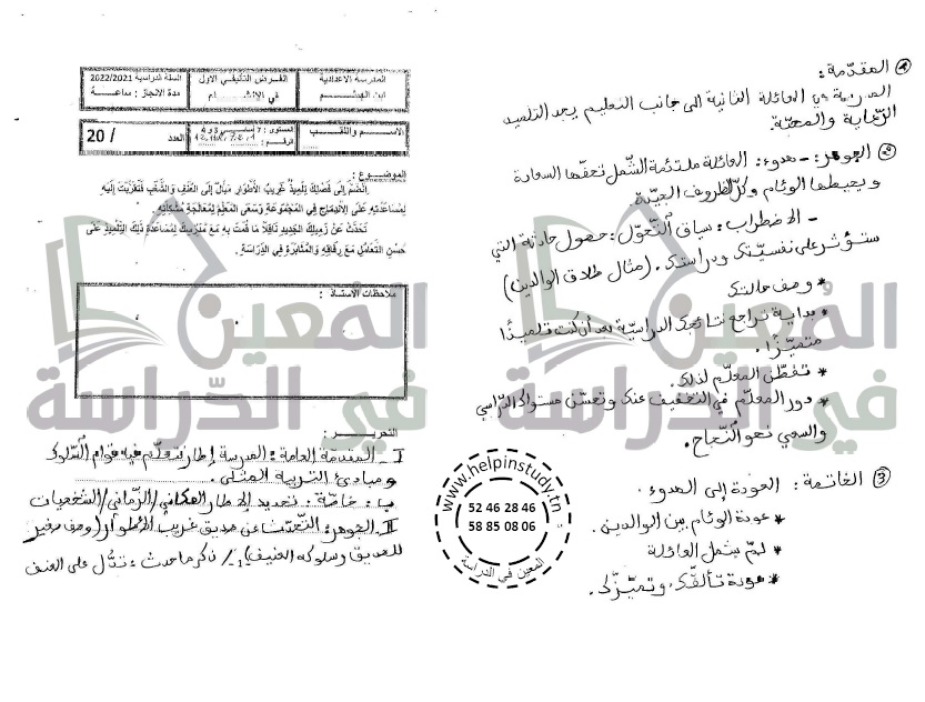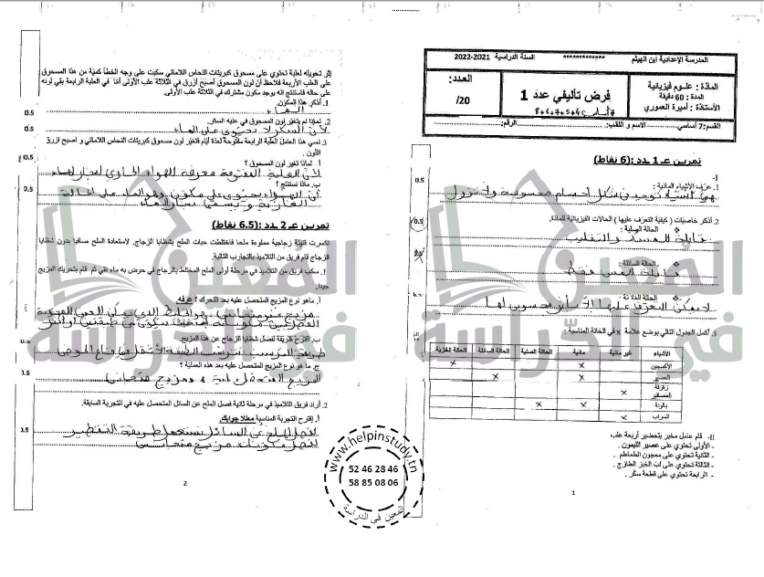 فروض تأليفية سنة 7 الثلاثي الأول جميع الفروض مرفقة بالإصلاح المفصل