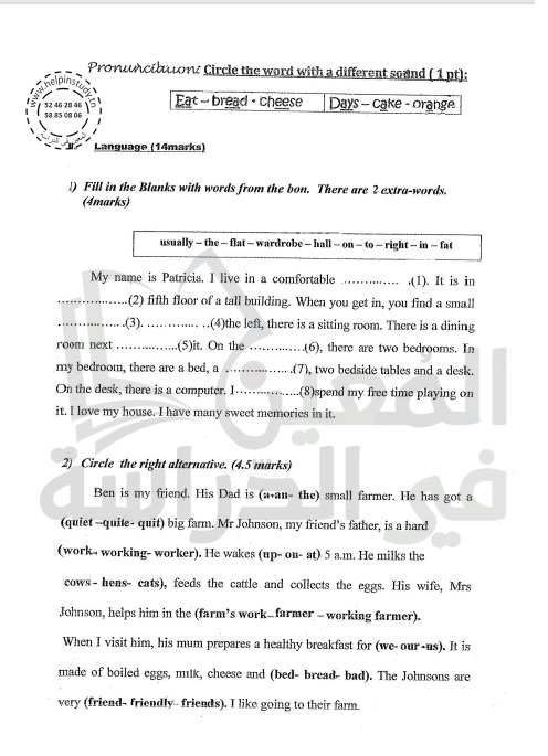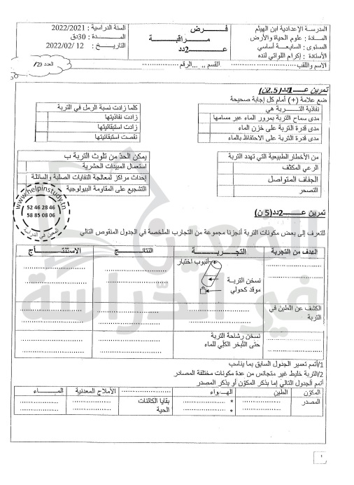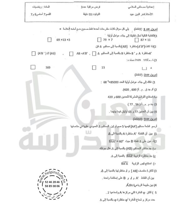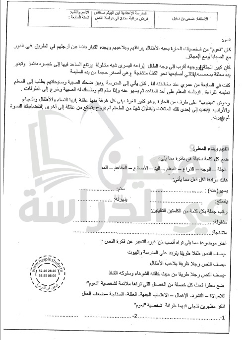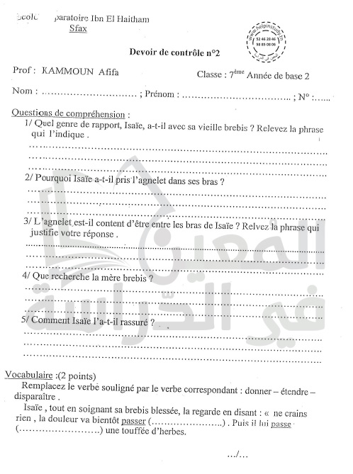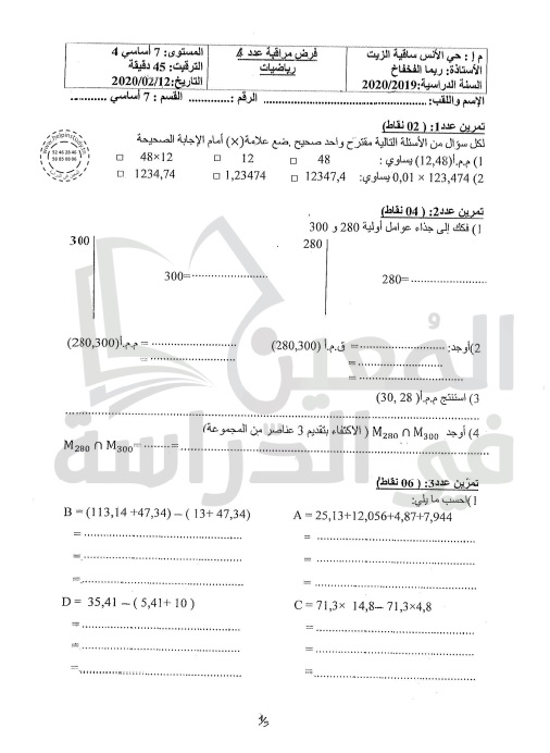 فروض مراقبة سنة 7 الثلاثي الثاني