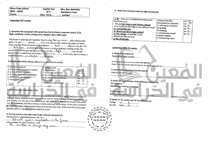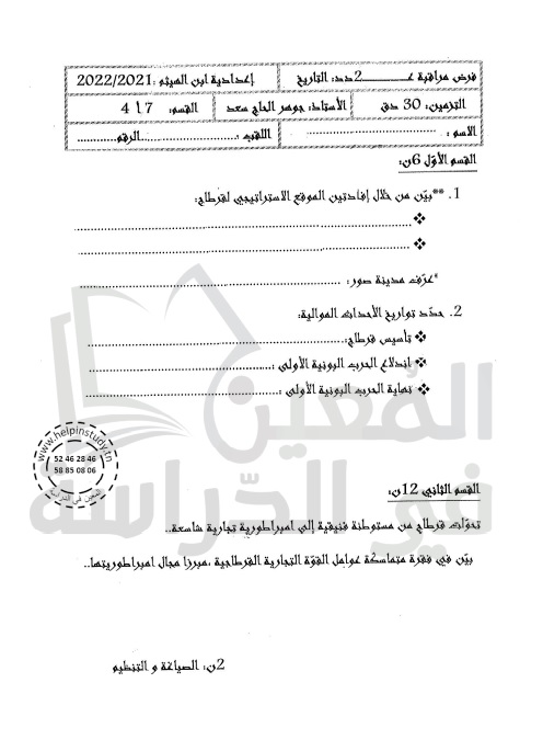 الوسم: فروض مراقبة سنة 7 الثلاثي الثاني